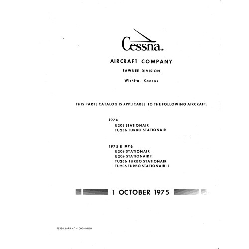 - Product Code: Cessna 206 Series Parts Catalog 1974 thru 1976