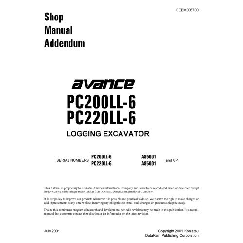 - Product Code: Komatsu PC200LL-6 and 220LL-6 Logging Excavator Shop