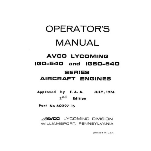 This 94 pages Operator's Manual in Pdf Download for the 1974 Lycoming IGO-540 and IGSO-540 Series Aircraft Engines Part Number 60297-15-1.