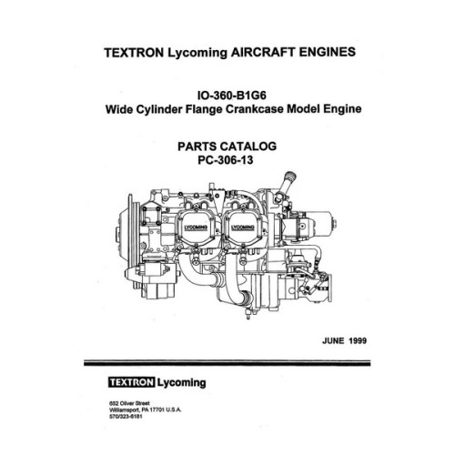 This 66 pages Parts Catalog in Pdf Download for the 1999 Lycoming IO-360-B1G6 Wide Cylinder Flange Crankcase Model Engine WCFC PC-306-13.
