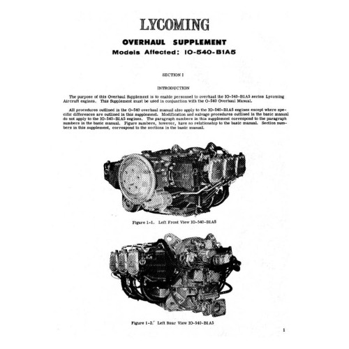- Product Code: Lycoming IO-540-B1A5 Overhaul Manual Supplement
