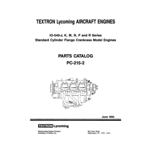 This 118 pages Parts Catalog in Pdf Download for the 1993 Lycoming IO-540-J, K, M, N, P and R Series Standard Cylinder Flange Crankcase SCFC Model Engines PC-215-2.
